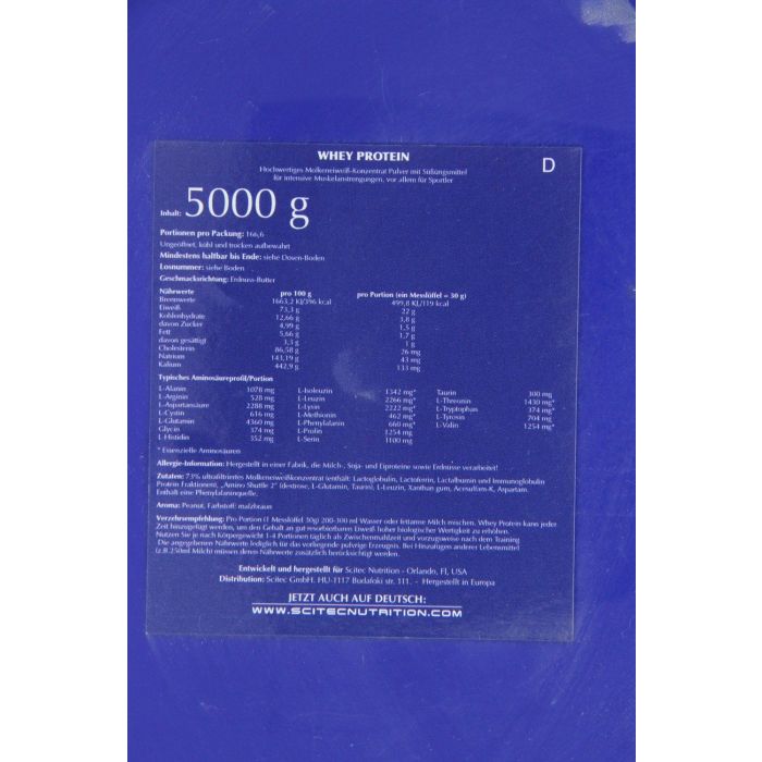 Peanut Butter: concentrat de proteine din zer, dextroză, taurină, arome (unt de arahide), potențiator de aromă (clorură de sodiu), L-glutamină, coloranți (Maizbraun), agent de îngroșare (gumă xantan), îndulcitori artificiali (acesulfam K, sucraloză).