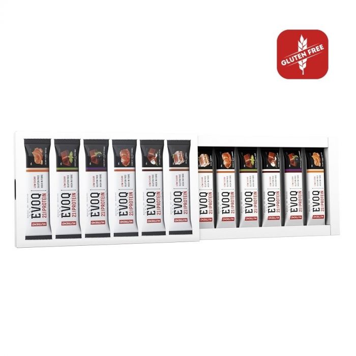 Batonul proteic EVOQ are un gust excelent, un conținut scăzut de carbohidrați și depășește barierele alimentației sportive normale. Acest baton este unic datorită tehnologiei de fabricație, materiei prime de înaltă calitate și a gustului perfect. Conține până la 21 g proteine de înaltă calitate, fibre, zinc sau colostru, absolut tot ceea ce are nevoie organismul unui sportiv sau a unei persoane active. În schimb, nu conține gluten și este disponibil în șase arome neobișnuite, cum ar fi: caramel sărat sau unt de arahide.