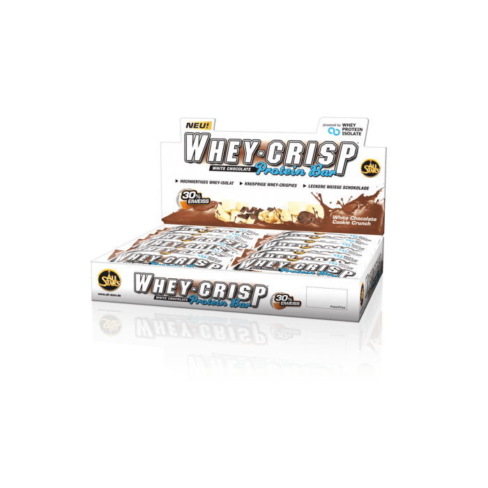 Whey-Crisp Protein Bar este un baton proteic gustos cu o proporţie de 30% de proteine din izolat proteic pur din zer. Batonul este glazurat cu ciocolată albă delicioasă şi mici bucăţi crocante din zer. Este alegerea ideală când sunteţi în mişcare, la serviciu, la şcoală sau într-o şedinţă. Încercaţi o gustare sănătoasă!