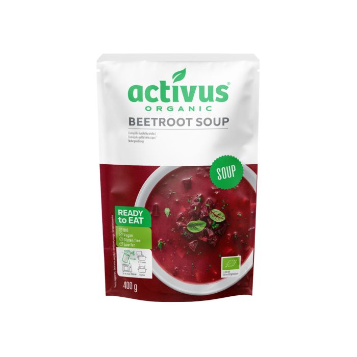 Supă Organică de Sfeclă este preparată din ingrediente BIO și conține doar ingrediente proaspete, fără utilizarea conservanților. Are o aromă și un gust original, de care vă puteți bucura oriunde, deoarece supa este gata pentru consum imediat.