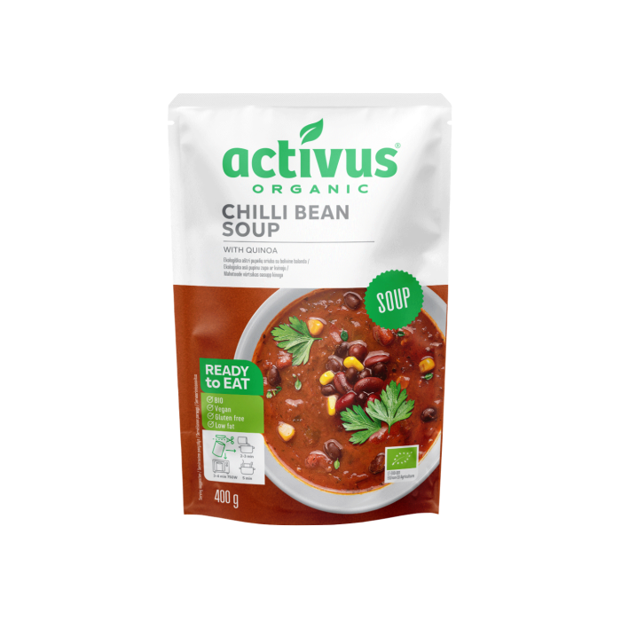 BIO Supă de Fasole cu Chili - o supă delicioasă cu un gust plăcut picant pe care trebuie doar să o încălziți și să o savurați