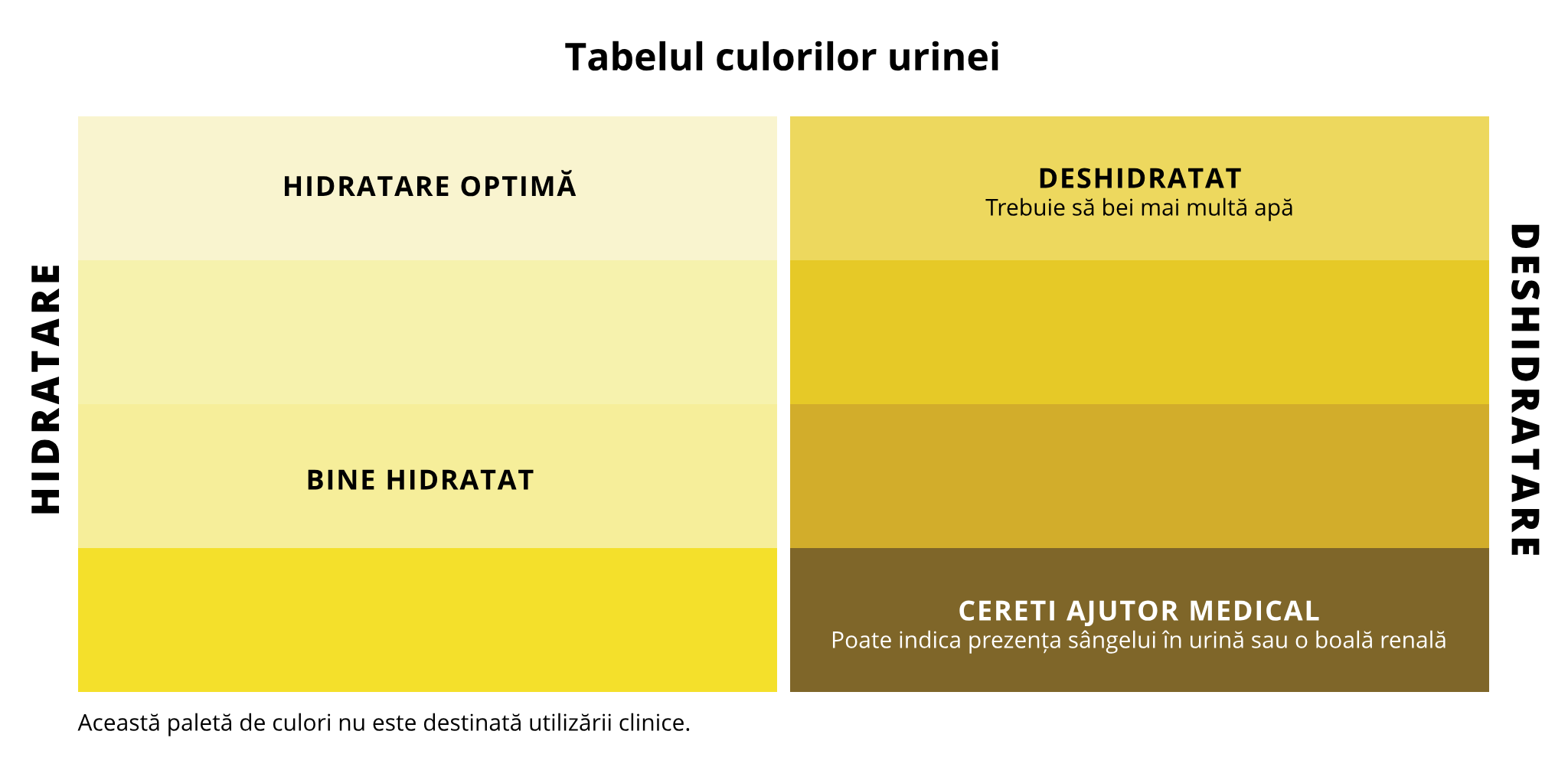 Dacă nu sunteți sigur dacă sunteți suficient de hidratat, un test simplu vă va ajuta, și anume, estimarea hidratării în funcție de culoarea urinei. Dacă aceasta este