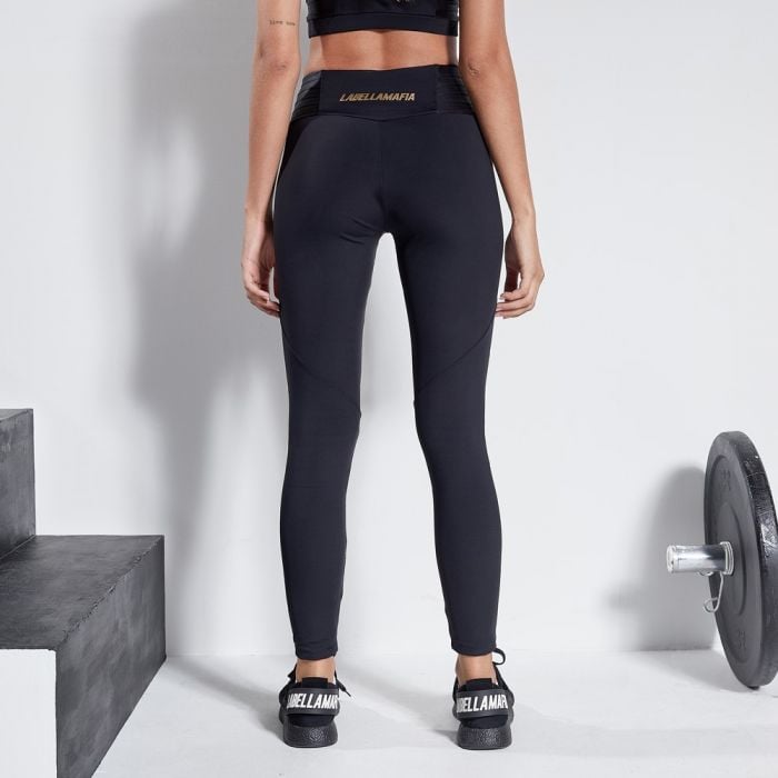 Colanții pentru femei Allure sunt colanți fitness cu talie înaltă decorați cu logo-ul auriu LABELLAMAFIA în partea din spate. Sunt confecționați dintr-un material foarte elastic dar confortabil care vă va evidenția silueta. Decupajele din zona coapselor acoperite cu benzi de plasă fină inovative vor asigura respirabilitate maximă și absorbția transpirației astfel încât să vă puteți bucura la maximum de alergat, ciclism, antrenamente și yoga.
