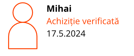 O recenzie etichetată drept „Achiziție neverificată” nu provine neapărat de la un client care chiar a cumpărat unul dintre produsele noastre. „Achiziție neverificată” înseamnă că nu putem garanta autenticitatea acestei recenzii, deoarece autorul acesteia fie nu a fost conectat la contul său, fie a fost conectat, dar nu a achiziționat produsul în cauză prin intermediul magazinului nostru online.