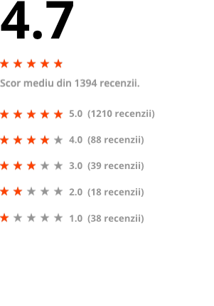 Acest scor reprezintă evaluarea medie a calității produsului obținută din toate recenziile verificate, adică de la clienții care au achiziționat produsul respectiv din magazinul nostru online prin contul lor de utilizator.