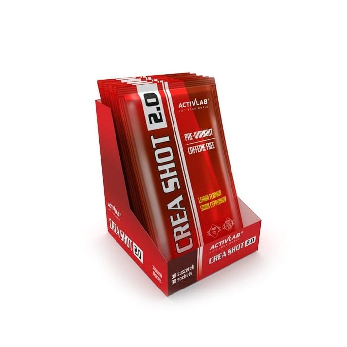 Crea Shot 2.0 este un supliment de pre-antrenament instant ce conține mai multe forme de creatină, beta-alanină, taurină, vitamine din grupul B și multe alte ingrediente active. Produsul nu conține cofeină, prin urmare este potrivit pentru persoanele care nu tolerează această substanță. De asemenea, este ideal pentru persoanele care fac mișcare seara și au nevoie de un boost de energie după o zi lungă fără a afecta somnul sau calitatea acestuia. O doză conține 5 g de creatină sub diferite forme. Aceasta, în cantitatea de 3 g pe zi, crește performanța în timpul perioadelor scurte și intense de exercițiu, ceea ce puteți obține ușor cu acest produs. În compoziție veți regăsi și beta-alanină.