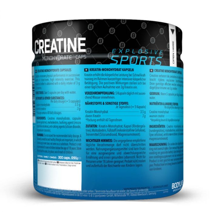 Creatină Capsule înglobează creatină monohidrată eficientă sub formă practică de capsule care conțin 3,5 g de creatină într-o singură doză. Este populară în special pentru că poate crește performanța pe perioade scurte consecutive de antrenament intens, lucru apreciat nu numai de sportivii de forță.