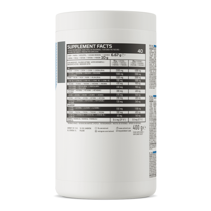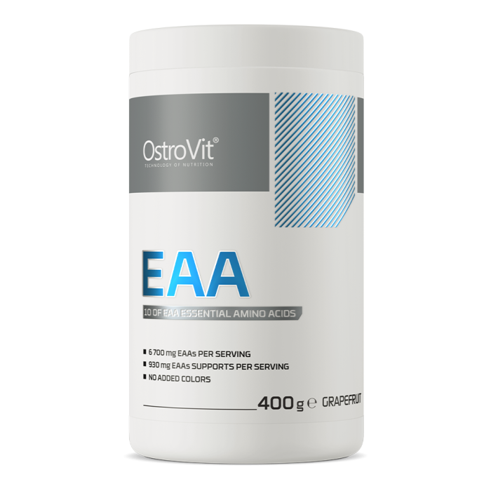 EAA este o sursă de aminoacizi esențiali folosiți de corpul uman pentru a produce proteine. Sunt importanți, deoarece susțin dezvoltarea și întreținerea masei musculare. EAA este un produs îmbogățit și cu glutamină, tirozină, cisteină și vitamina B6.
