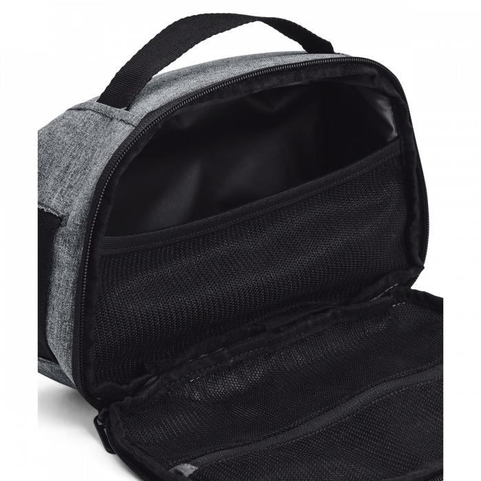 Geanta Contain Travel Kit este o geantă foarte practică pentru păstrarea în siguranță a articolelor de toaletă și a suplimentelor nutriționale. Este ideală pentru călătorii sau pentru drumuri la sală, permițându-vă să luați tot ce vă trebuie. are un volum de 4 litri și grație tehnologiei UA Storm, va proteja cu ușurință conținutul împotriva apei și a altor intemperii. În plus, este rezistentă, de încredere și prevăzută cu un fermoar practic se va asigura că nu se va pierde conținutul din greșeală.