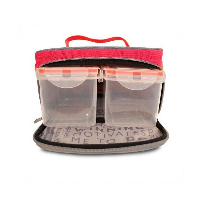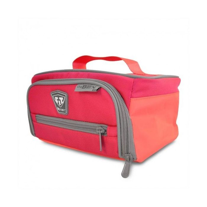 Geanta pentru alimente The BOX SM de culoare roz, în care puteți să vă păstrați toate alimentele sănătos gătite și să le luați oriunde cu voi. Este un organizator revoluționar al meselor voastre principale. Geanta este portabilă și confecționată din material de înaltă calitate - poliester 1000D. Sunt incluse două cutii pentru alimente perfect etanșe și două geluri de răcire care mențin alimentele la rece.