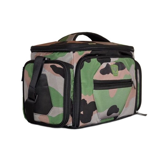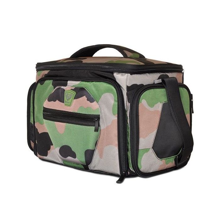 Geanta sport pentru alimente The Shield LG Camo, cu design modern, funcții inovatoare și din material de cea mai înaltă calitate. Este ușoară, portabilă, fabricată din poliester rezistent. Include 5 cutii mari pentru mâncare, 2 geluri de răcire, compartiment pentru vitamine, suplimente și băuturi proteice, 2 buzunare inteligente pentru sticlă, batoane proteice și fructe. Păstrează alimentele proaspete până la 8 ore.