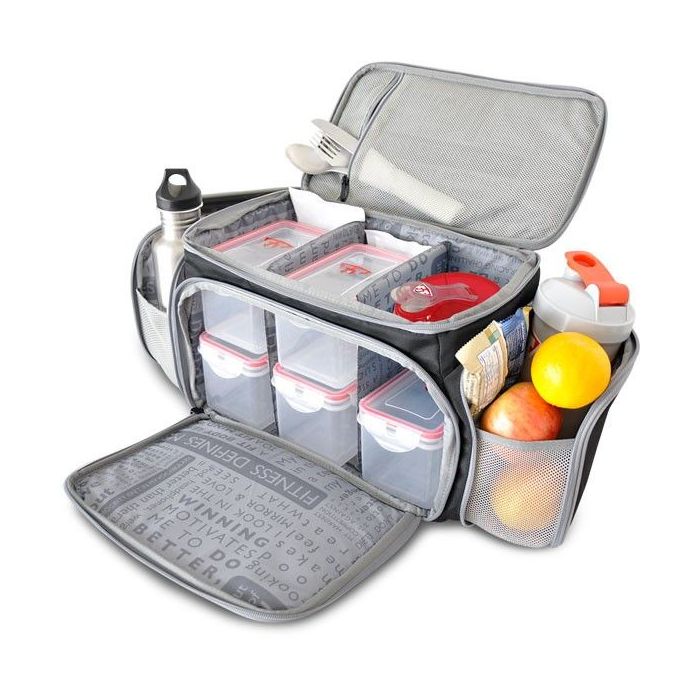 Geanta sport pentru alimente The Shield LG Camo, cu un design modern, funcții inovatoare și material de cea mai înaltă calitate. The Shield duce noțiunea de genți pentru alimente la un alt nivel. Este ușoară, portabilă, fabricată din poliester rezistent. Include o curea de umăr căptușită, care este detașabilă. Pur și simplu, în ea vă puteți organiza mesele sănătoase pentru toată ziua. Include 5 cutii mari pentru alimente, 2 geluri de răcire (aprobate de TSA), dozator pentru vitamine, suplimente și băuturi proteice, 2 buzunare extrem de inteligente pentru sticle, batoane proteice și fructe. De asemenea, geanta este prevăzută cu un spațiu pentru cheile dumneavoastră. Pe partea exterioară din spate veți găsi loc și pentru jurnalul de fitness sau pentru o revistă. Geanta The Shield vă ușurează deplasarea la locul de muncă sau la sala de sport și în plus, veți avea întotdeauna la dispoziție mâncare sănătoasă și proaspătă timp de 8 ore. Geanta are o capacitate de 19,5 litri.