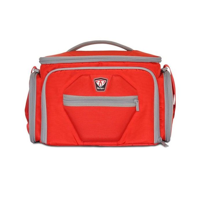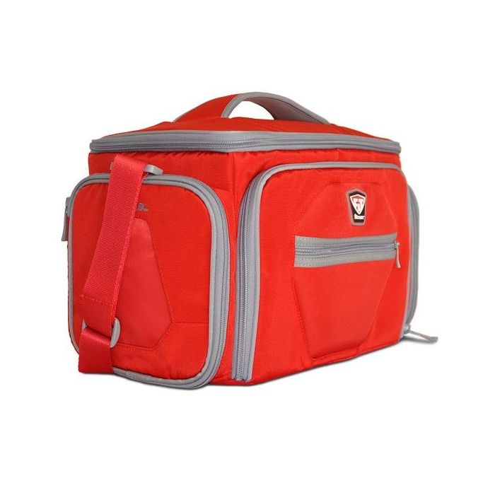 Geanta sport pentru alimente The Shield LG Red, de culoare roșie, cu design modern, funcții inovatoare și din material de cea mai înaltă calitate. Este ușoară, portabilă, fabricată din poliester rezistent. Include 5 cutii mari pentru mâncare, 2 geluri de răcire, compartiment pentru vitamine, suplimente și băuturi proteice, 2 buzunare inteligente pentru sticlă, batoane proteice și fructe. Păstrează alimentele proaspete până la 8 ore.