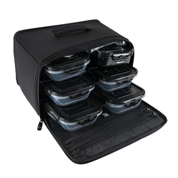 Geanta pentru alimente Beast Duffle Black păstrează toate cumpărăturile și alimentele proaspete pentru mai mult de 8 ore. Este confectionată din nailon de înaltă calitate și cuprinde până la 6 mese accesibile în mod individual. Acesta include 5x cutii mari pentru ambalaj, 1x Large Sport Nutrition box și 3x cutii de răcire. Are un compartiment principal foarte mare, curea ergonomică pentru umăr, pentru o fixare confortabilă.