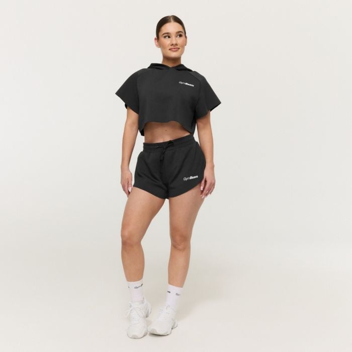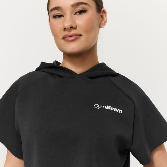 Această piesă se remarcă prin croiala sa boxy mai largă, care oferă un aspect relaxat. Baza designului include mâneci raglan cu un efect de tăietură (cut-off) și o croială scurtă (cropped) cu un finisaj lejer la tivul inferior, oferindu-i o notă ușor rebelă. Un adaos interesant este gluga dublu stratificată fără șnururi, care își păstrează forma bine și completează aspectul general minimalist al acestui model.