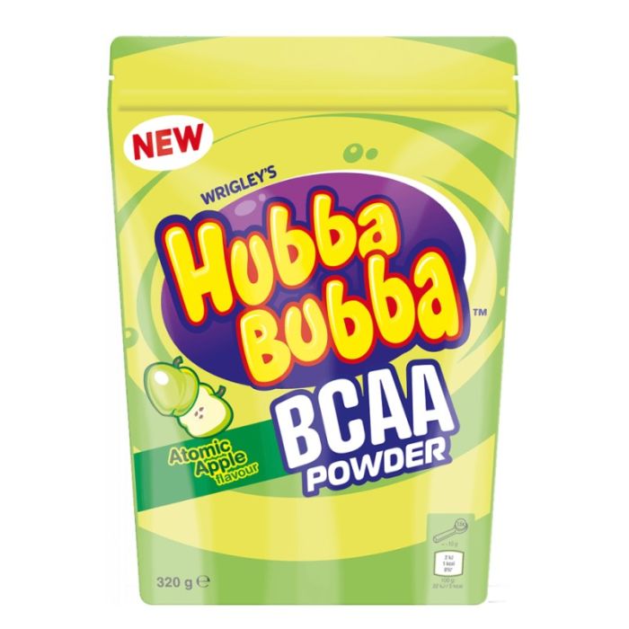 Hubba Bubba BCAA este un supliment pulbere cu o aromă emblematică de gumă de mestecat Hubba Bubba, care conține aminoacizi cu lanț ramificat cum ar fi leucină, izoleucină și valină. Aceștia sunt aminoacizi esențiali care servesc ca blocuri de construcție pentru mușchi. Acest supliment este, prin urmare, valoros pentru toate tipurile de sportivi.