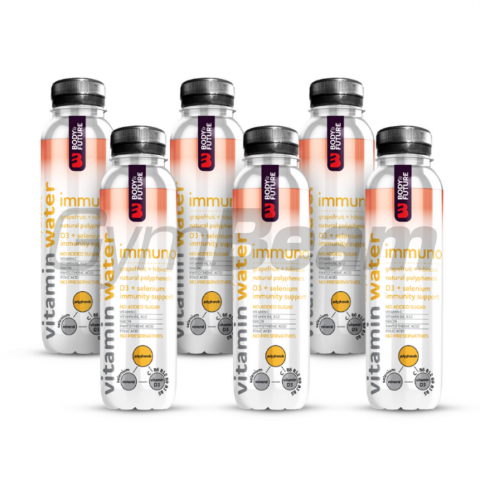 Immuno Vitamin Water este îmbogățită suplimentar cu vitamina D3. Expunerea la soare este cea mai importantă sursă naturală de vitamina D. Oamenii suferă de obicei de deficitul acesteia, mai ales în lunile de toamnă și iarnă, când soarele nu strălucește atât de des. Prin urmare, este important să asigurați aportul de vitamina D3 prin alimente sau suplimente. Aportul său este important deoarece contribuie la buna funcționare a sistemului imunitar și a mușchilor, dar și la menținerea sănătății oaselor și dinților. În plus, produsul conține seleniu, care face adesea parte din produsele cosmetice. Acest lucru se datorează faptului că are efectul de a menține părul și unghiile sănătoase.