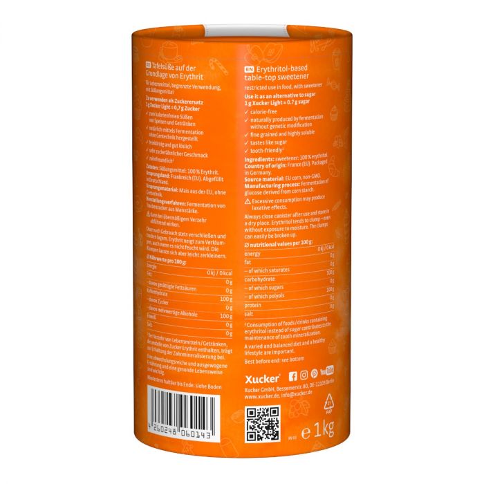 Erythritol Light este un îndulcitor obținut prin fermentarea glucozei din amidon de porumb. Este o alternativă excelentă la zahărul clasic, are un aspect asemănător cu acesta, însă nu conține calorii. Gradul său de îndulcire este echivalent cu aproximativ 70% din cel al zahărului alb sau brun. Produsul este vegan și este ambalat într-un recipient practic, resigilabil.