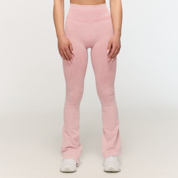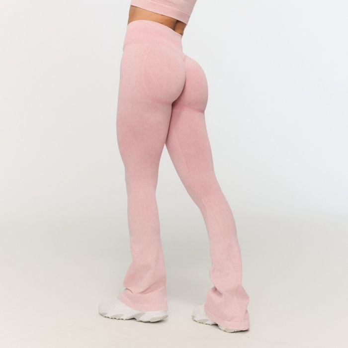 Acești pantaloni funcționali, cu efect washed, dispun de un design push-up și scrunch butt, care vă modelează perfect formele. Împreună cu croiala mulată și talia înaltă reiată, conturează frumos silueta și vă evidențiază formele. De la genunchi în jos, colanții push-up se lărgesc treptat în populara croială evazată. Cu toate acestea, își păstrează un aspect minimalist și se combină ușor cu alte piese sportive. Îmbrăcați acești pantaloni evazați la modă și bucurați-vă de un sentiment de încredere și confort la fiecare antrenament.