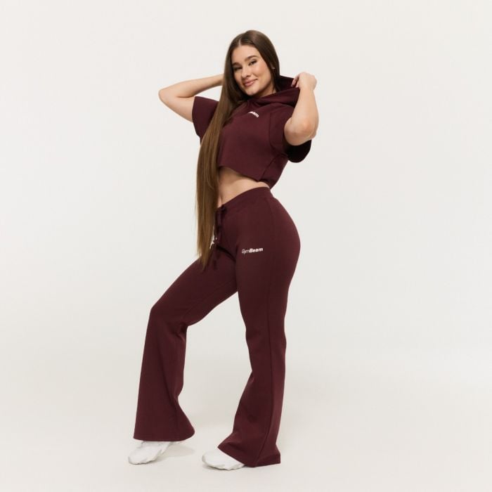 Acest model atrage imediat atenția prin croiala sa modernă în stil "flare" (evazat), care se lărgește ușor de la genunchi în jos. Acest design flatează silueta și arată foarte feminin. Deoarece nu au buzunare, aceștia creează un aspect curat și elegant. Mai mult, acești pantaloni sport cu talie medie sunt echipați cu o bandă elastică practică și șnur, permițându-vă să îi ajustați în funcție de nevoile voastre.