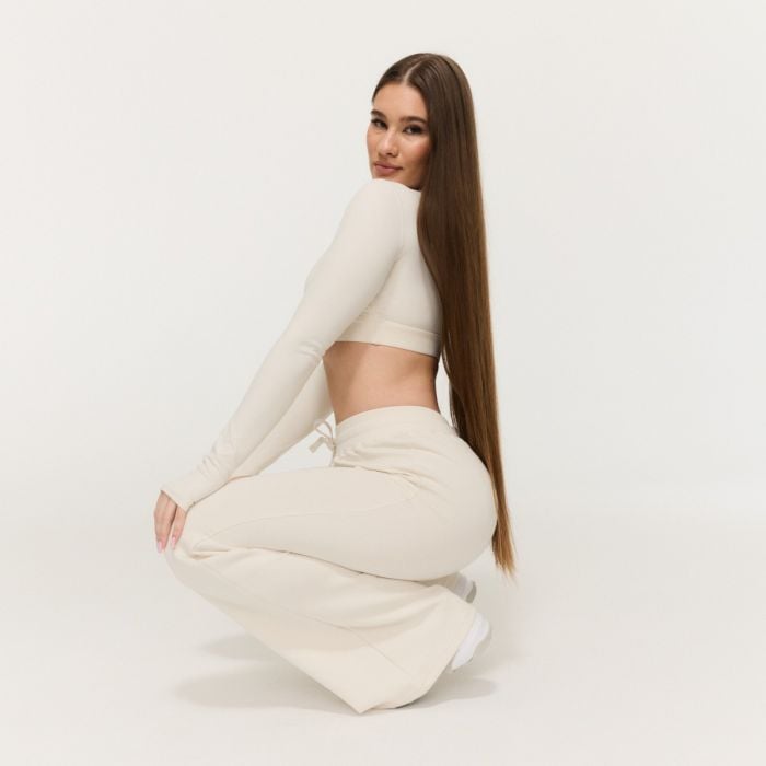 Acest model atrage imediat atenția prin croiala sa modernă în stil "flare" (evazat), care se lărgește ușor de la genunchi în jos. Acest design flatează silueta și arată foarte feminin. Deoarece nu au buzunare, aceștia creează un aspect curat și elegant. Mai mult, acești pantaloni sport cu talie medie sunt echipați cu o bandă elastică practică și șnur, permițându-vă să îi ajustați în funcție de nevoile voastre.