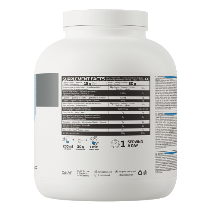 Proteina din carne de vită este un hidrolizat de carne de vită cu o proporție mare de proteine. Acestea susțin creșterea și menținerea mușchilor, precum și sănătatea oaselor. În plus, este îmbogățită cu aminoacizi sub formă de l-glutamină și l-arginină. În același timp, nu conține grăsimi sau zaharuri.