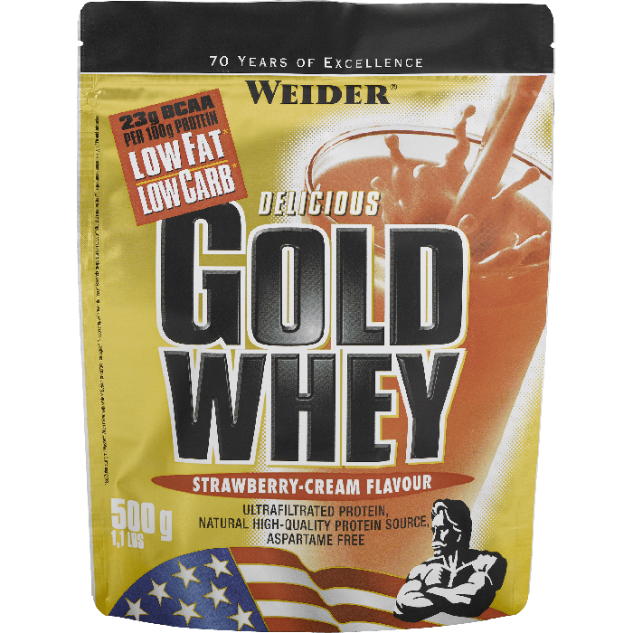 Weider Gold Whey Protein sunt proteine din zer de înaltă calitate și concepute pentru creșterea maximă a masei musculare, fără grăsimi inutile, cu un efect anti-catabolic și puternic anabolic. Weider Gold Whey Protein este ideal pentru utilizareade dimineață, imediat după trezire și chiar înainte și imediat după antrenament. Este ideal în faza de început a antrenamentelor pentru a evidenția definiția musculară.