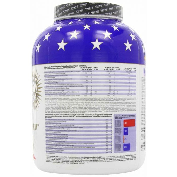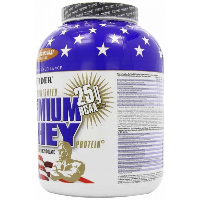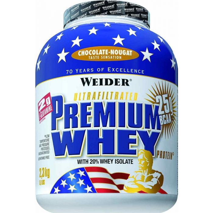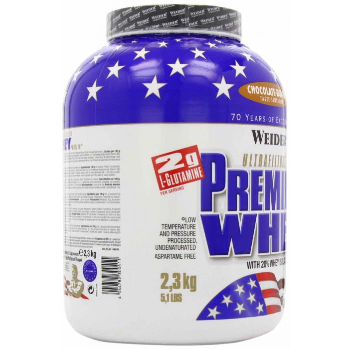 Premium Whey sunt proteine din zer cu gust excelent de înaltă calitate. Este cea mai populară băutură Weider cu proteine, 70,2% - concentrat proteic din zer, izolat 5,3% carbohidrați și 4,6% grăsime. Aceastea se fac prin microfiltrare la o temperatură scăzută, ceea ce este foarte prietenos organismului și permite proteinelor să mențină o mare parte a componentelor biologice active. Aceste proteine conțin o cantitate mare de substanțe active, cum ar fi globuline, alfa-lactoglobulină, beta-lactoglobulină, imunoglobulină și glicomacropeptide. Este bogat in aminoacizi BCAA și L-glutamină.