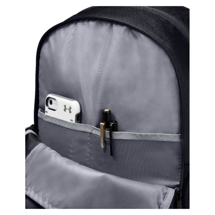 Rucsacul Roland Backpack este un rucsac original și practic fabricat cu ajutorul tehnologiei Storm1, care asigură o suprafață rezistentă la apă și vă protejează lucrurile. Rucsacul are 2 compartimente principale, spațioase, cu fermoar și partea inferioară întărită. Include și un buzunar în interior pentru un laptop de 15", buzunarul din față este pentru lucrurile de valoare, iar buzunare laterale pentru sticlă sau shaker. Dispune de bretele ajustabile pentru un confort maxim și un mâner moale pentru o purtare ușoară în mână. Partea din față este decorată cu logo-ul original al brandului Under Armour.