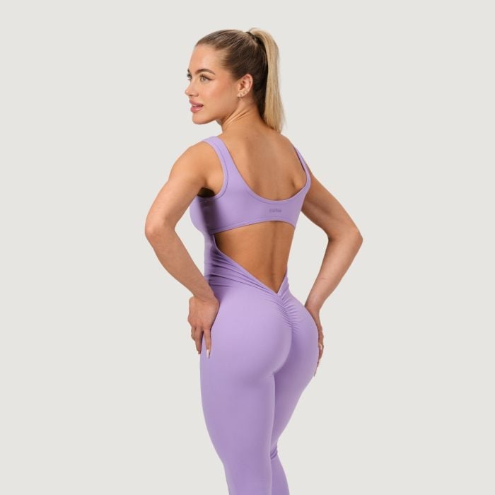 Această salopetă sport, fără mâneci și opacă, cu decolteu rotund, se remarcă prin designul său și croiala slim fit, care se mulează perfect pe silueta voastră. Picioarele lungi, cu finisaj evazat popular (pantaloni flare), alungesc optic picioarele, în timp ce efectul scrunch pe posterior modelează și evidențiază frumos fesele. Lipsa cusăturii frontale garantează confort maxim, fără disconfort sau presiune neplăcută.