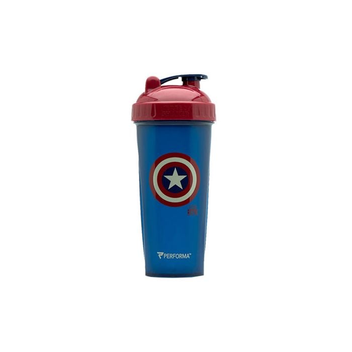 Performa Captain America este un shaker de calitate cu un volum de 800 ml. Antrenați-vă ca un super-erou adevărat cu un shaker original Performa inscripționat cu logo-ul super-eroului din benzile desenate! Este fabricat dintr-un material plastic non-toxic - BPA free, pentru care s-au folosit numai coloranți alimentari. Poate fi curățat în mașina de spălat vase, iar noua sa tehnologie îmbunătățită de amestecare asigură dizolvarea eficientă a suplimentelor voastre preferate, fără cocoloașe și fără impurități.