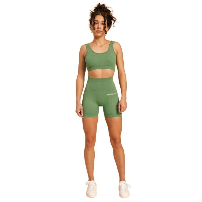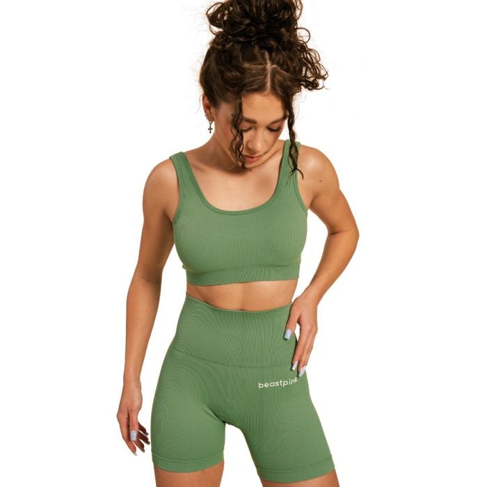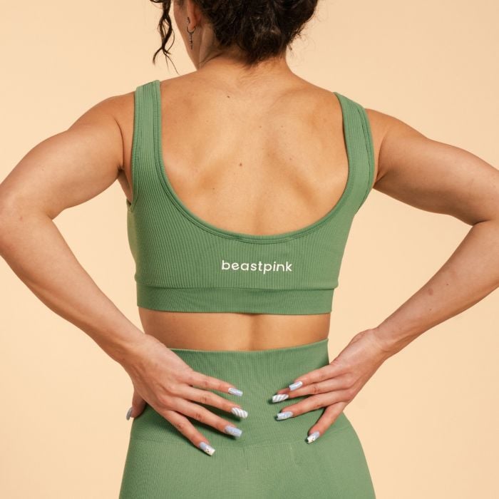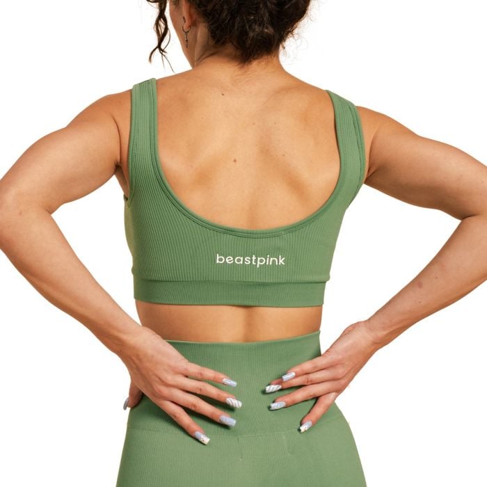 Pe lângă materialul perfect al sutienului, veți aprecia și ajustarea acestuia. Este adaptat pentru a vă curpinde perfect formele, astfel încât să vă puteți concentra pe antrenamentul vostru. Ar trebui să menționăm, de asemenea, designul său atemporal. Impresionează cu modelul actual cu nervuri și spatele deschis, care îi conferă un aspect unic. În plus, este completat de logo-ul BeastPink pe spate.
