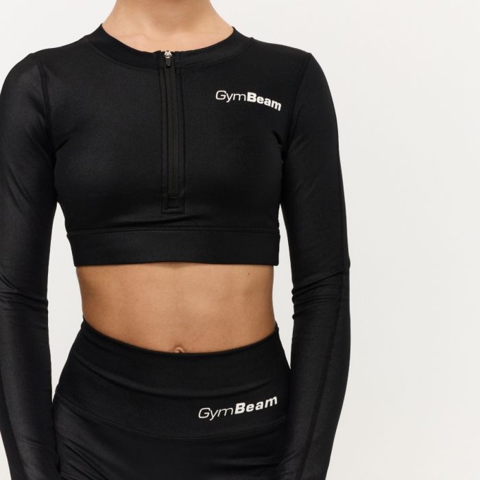 Această piesă funcțională are croiala unui crop top, care, combinată cu mâneci lungi, oferă un aspect modern și elegant. Un element distinctiv este fermoarul frontal practic, care permite reglarea ventilației și facilitează îmbrăcarea. Mânecile sunt prevăzute cu orificii pentru degete, menținând sutienul sport fixat chiar și în timpul mișcărilor intense și protejând palmele. Sutienul interior ascuns, cu căptușeală detașabilă, oferă suport ușor până la mediu, permițându-vă să vă concentrați pe performanță fără distrageri inutile.