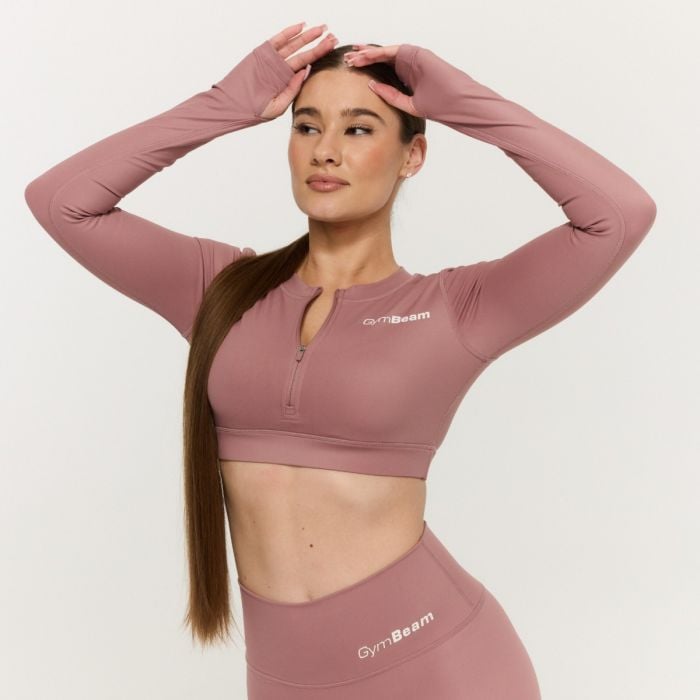 Această piesă funcțională are croiala unui crop top, care, combinată cu mâneci lungi, oferă un aspect modern și elegant. Un element distinctiv este fermoarul frontal practic, care permite reglarea ventilației și facilitează îmbrăcarea. Mânecile sunt prevăzute cu orificii pentru degete, menținând sutienul sport fixat chiar și în timpul mișcărilor intense și protejând palmele. Sutienul interior ascuns, cu căptușeală detașabilă, oferă suport ușor până la mediu, permițându-vă să vă concentrați pe performanță fără distrageri inutile.
