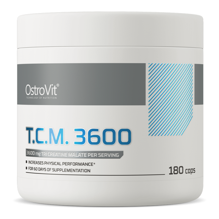 Tri-creatină malat T.C.M. este un supliment funcțional sub formă de capsule care conțin tri-creatină malat. Mai exact, este o combinație de creatină și acid malic într-un raport de 1:3, care este populară în special printre sportivii de forță, fanii HIIT sau jucătorii de sporturi de echipă. Creatina poate crește performanța în intervale scurte de antrenament intens. Acest lucru o să vă ajute să profitați la maximum de antrenament.