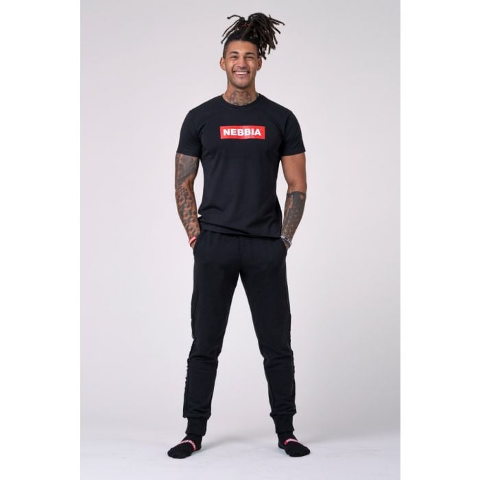 Tricou pentru bărbați Basic Black este o piesă vestimentară confortabilă cu un logo distinctiv. Are un croi clasic și este confecționat din bumbac 100%, așa că se mulează perfect și vă evidențiază pieptul, umerii și spatele. Are o utilizare universală, este minunat ca parte a unei ținute fitness, dar și la ținutele casual.