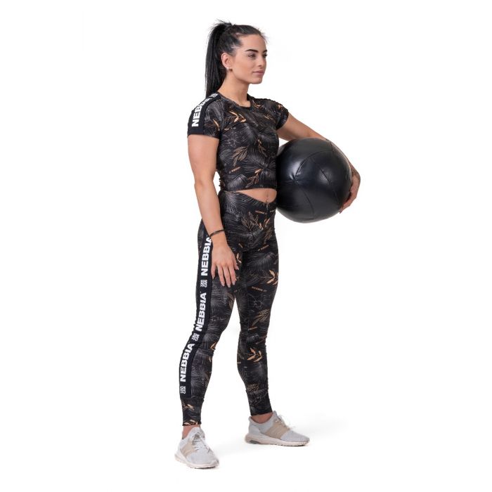 Tricoul pentru femei Crop Top Active Black este un articol vestimentar care o să vă fie de ajutor în timpul antrenamentelor intense, cât și în timpul activitățior din aer liber. Este fabricat din 75% poliester reciclat, care asigură o bună absorbție a transpirației și confort în timpul purtării. Amestecul de 25% elastan oferă o flexibilitate bună, ceea ce înseamnă că tricoul se potrivește perfect cu silueta voastră. În afară de funcționalitate, acest tricoul vă va încânta prin designul său excelent, cu imprimeu inspirat din natură, garantat a fi piesa centrală a oricărei ținute. Aspectul său general este finisat cu o croială elegantă, cropped, concepută pentru a vă arăta abdomenul plat, câștigat cu greu. Arătați tuturor că vă lucrați corpul!