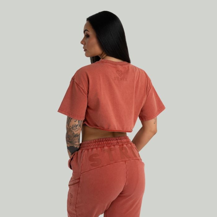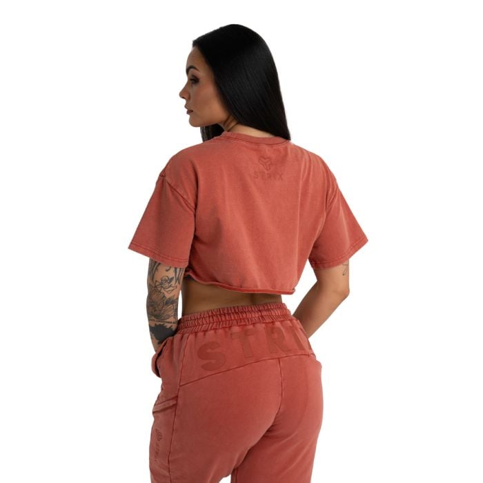 Acest crop top se remarcă și prin designul bine gândit. Are un decolteu rotund clasic și mâneci largi. Tivul inferior are un finisaj unic cusut, creând un aspect tăiat la modă. Atât partea din față, cât și cea din spate sunt personalizate cu logo-ul iconic STRIX, permițându-vă să vă afișați cu mândrie pasiunea pentru un stil de viață sănătos. Efectul trendy spălat adaugă o atingere subtilă vintage, dând tricoului un aspect ușor uzat cu nuanțe deschise și închise, făcând fiecare piesă unică. Acest tricou vă ajută să rămâneți în topul celor mai recente tendințe în modă.