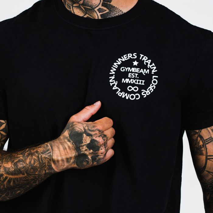 Tricoul Winners Train Black este un tricou de fitness realizat din bumbac 100%, lejer, așadar, vine perfect pe orice tip de siluetă. Designul său modern este completat de inscripția “Winners train, losers complain”, care vă va motiva să vă antrenați în mod regulat și să vă atingeți obiectivele de fitness.
